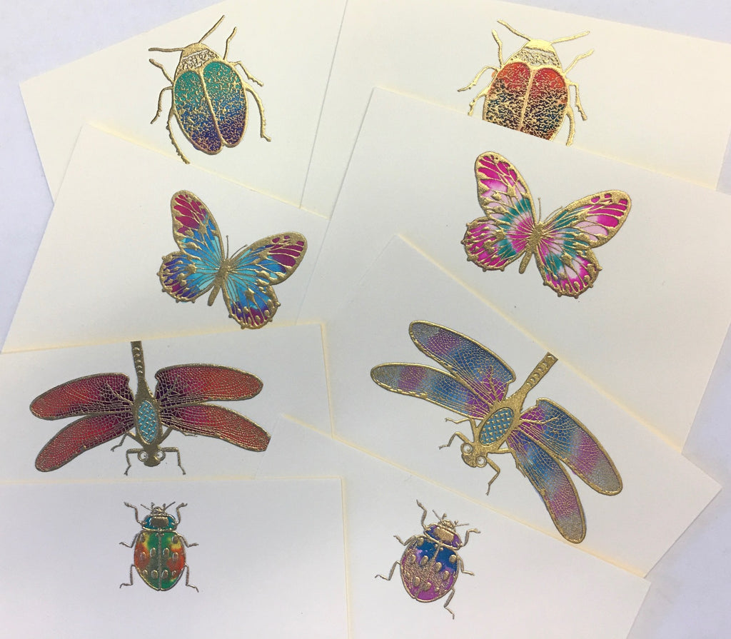 Assorted Bugs Hand Painted Place Cards (butterfly, scarab, ladybug and dragonfly) |  Set of 8