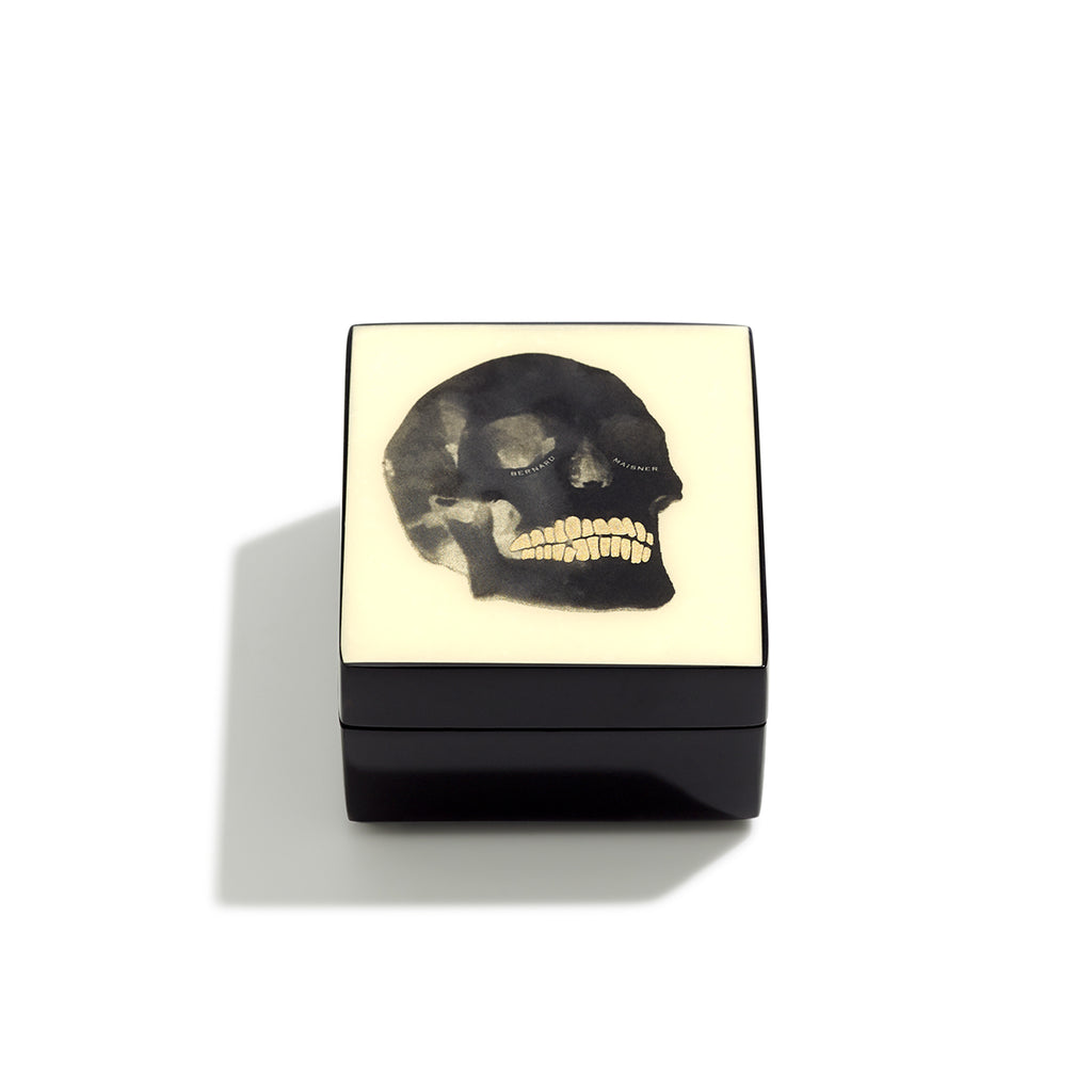 Decor meets function in the uniquely crafted, macabre lacquer box. Engraved gray and black tones contrasted with gold creates an incredible three-dimensional look to this dark box. The handcrafted wood box is finished using a centuries old method of layering the lacquer finish to accentuate the rich, hand-painted colors and producing a glowing patina. The luxurious felt lining is ideal for storing everything from paper clips on your desk or you most treasured jewelry on your vanity.