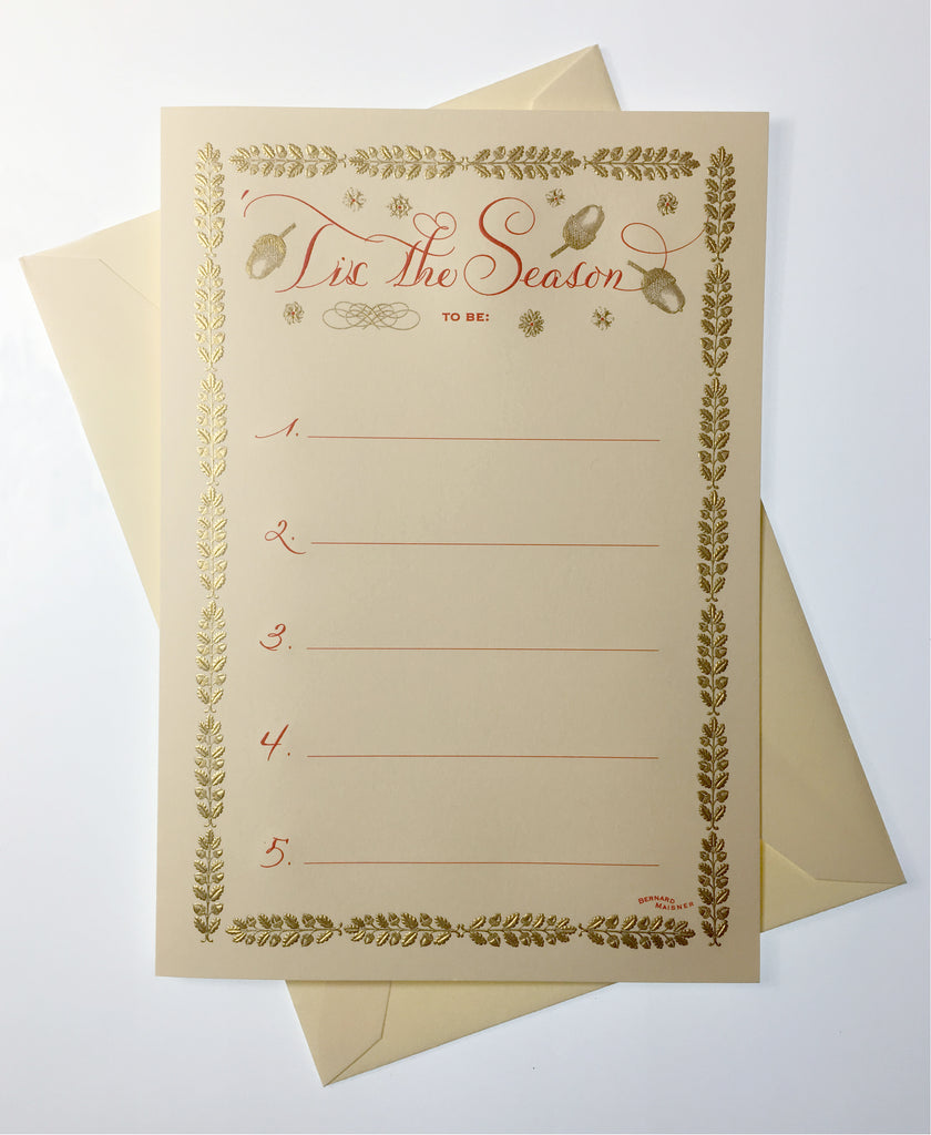 NEW! Engraved in beautiful gold and black on cream stock, this folder card lets you personalize your message right on page 1 - add your own list of 5 hopes and dreams for the new year (Jolly? in touch? Generous?...) Inside pages are blank.