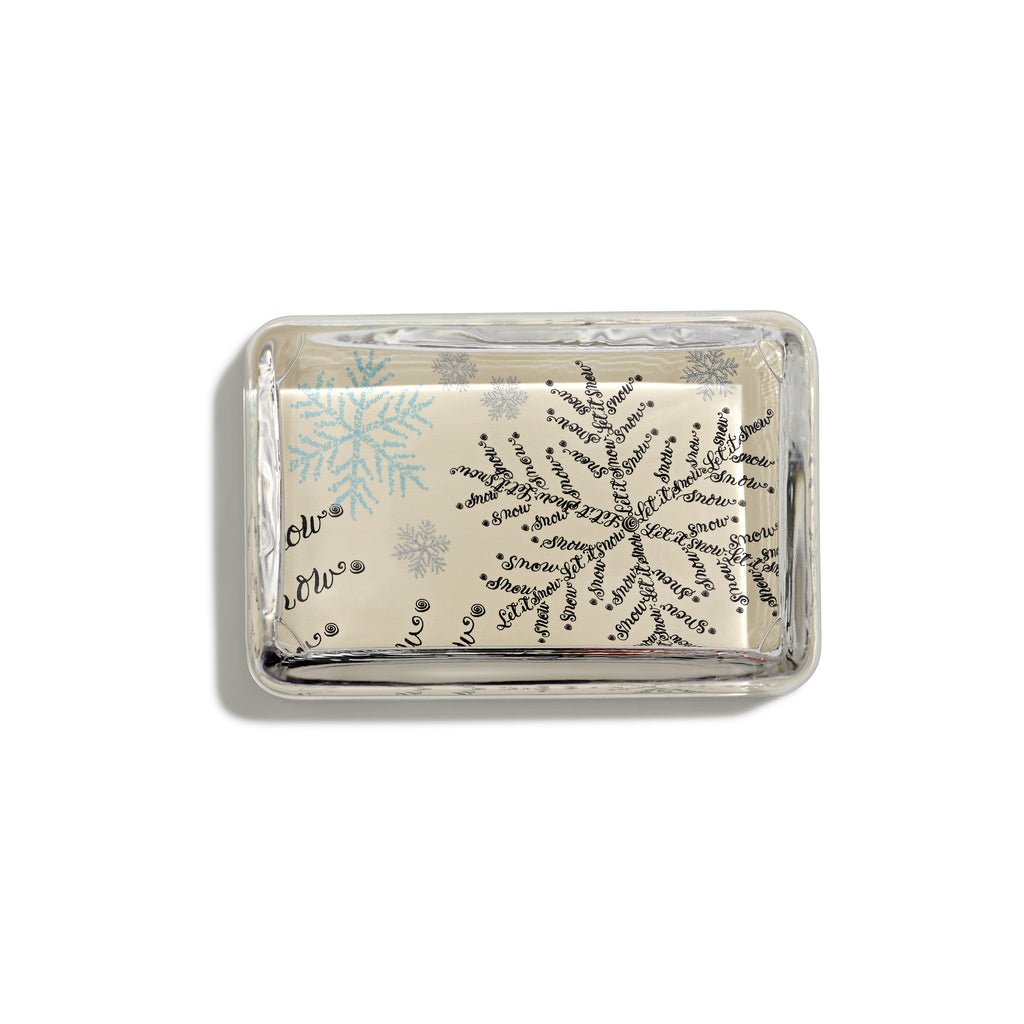 The "Let it Snow" snowflakes are engraved in blue, silver and black. Because the glass of each paperweight is handmade, slight variations and champagne bubbles may appear as a natural result of the process. Makes the perfect heartfelt gift.