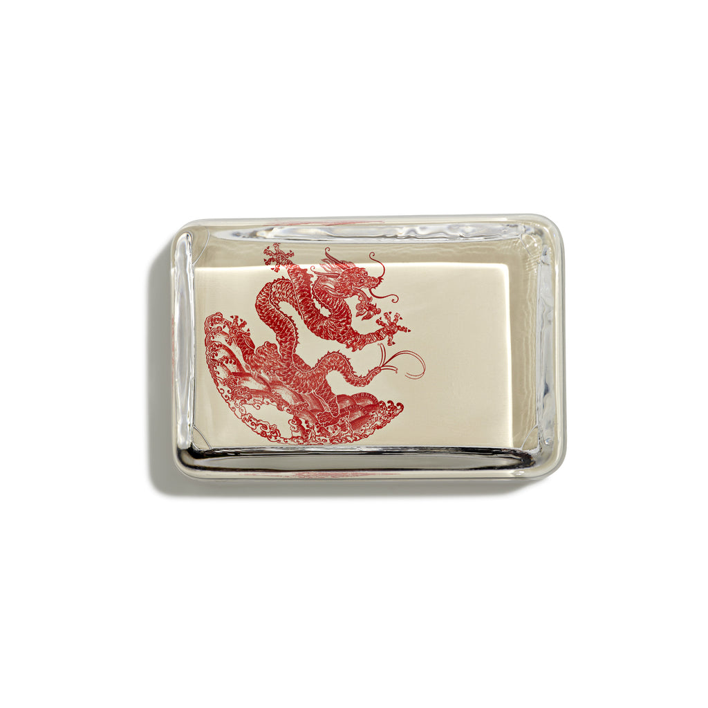 Bernard Maisner's signature dragon makes its appearance in red in this intriguing rectangular paperweight. Because the glass of each paperweight is handmade, slight variations and champagne bubbles may appear as a natural result of the process. Makes the perfect heartfelt gift.