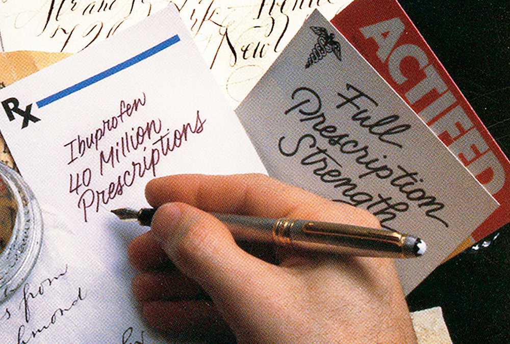 Bernard was contacted by an ad agency so they “could look at his hand.” Not knowing what they were talking about, he showed up. The agency had called in fifty professional hand models, and although all of their hands were good looking, none of them could write the words “Full prescription strength” in a style that the directors liked for the action spot. After looking at and taking a few Polaroid photos, the agency told Bernard that he had beautiful hands, and could they see his handwriting.