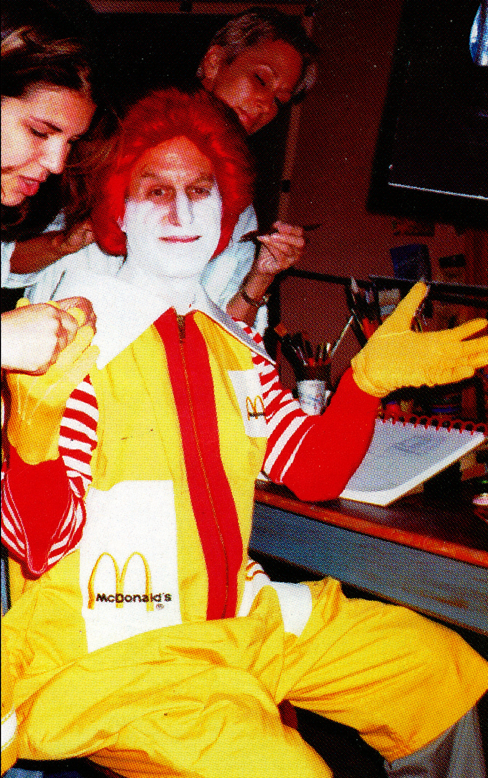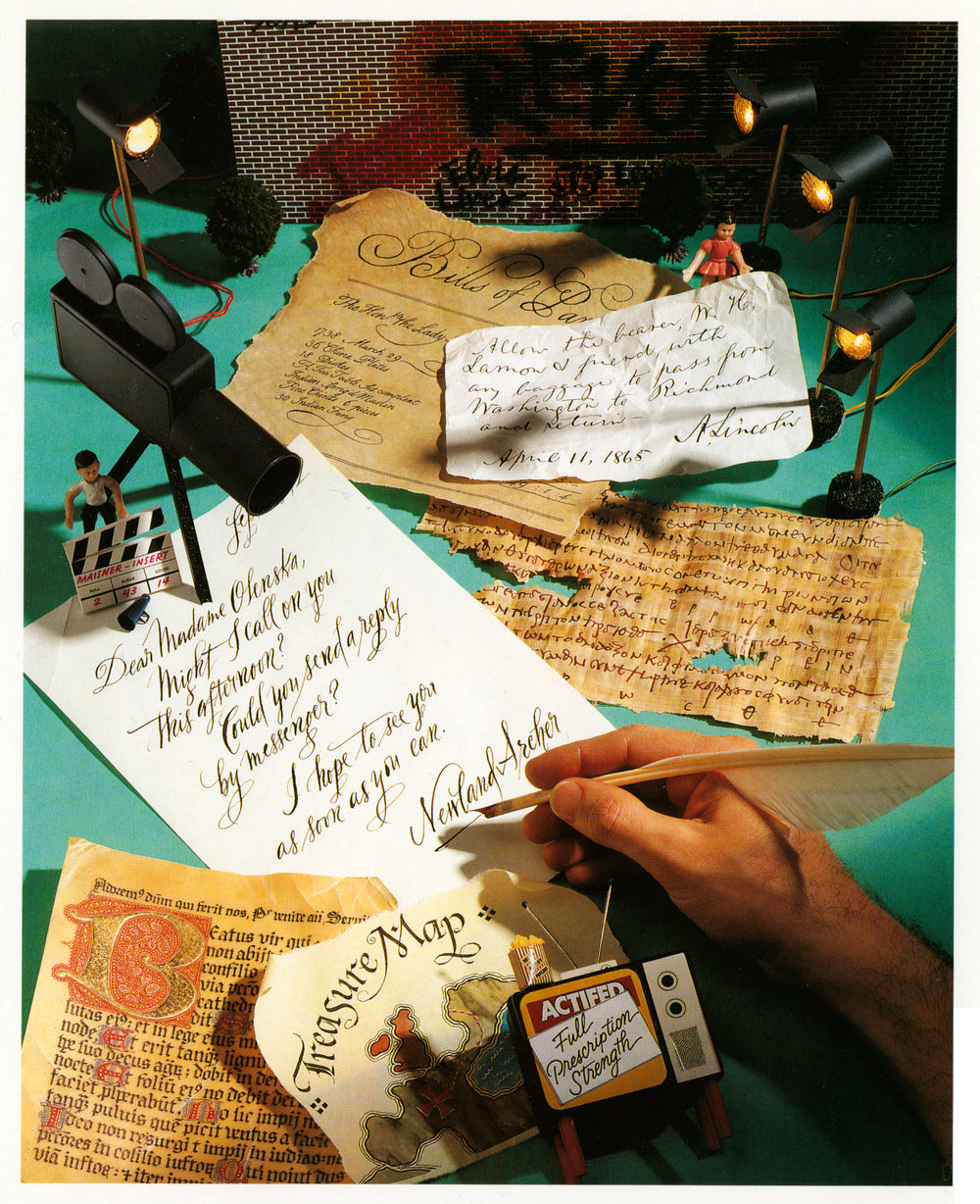 TV credits include an appearance on the Martha Stewart Living show in 2001, where he discussed and demonstrated calligraphy. He has appeared in numerous TV commercials, on-camera as a doctor, a businessman, a lawyer, a medieval monk, and even as Ronald McDonald—dressed in Ronald’s full costume and wig.
